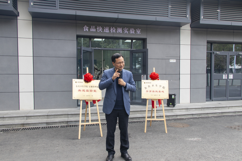 仪式上,公共卫生学院卫生检验学系主任张展介绍了实验室的建设背景、意义与发展规划。该实验室将聚焦校园食堂卫生评价与餐饮风险防控,提升检测能力,拓展检测项目,为学校食品安全管理提供技术支撑。同时,实验室也将作为劳动教育实践基地,促进专业教学、劳动育人与社会服务深度融合。