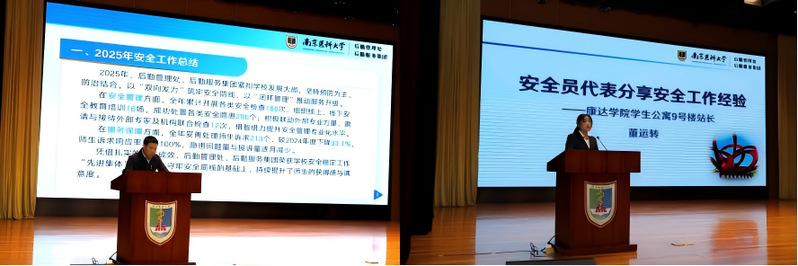 会上,安全与质量监督科科长徐世国汇报了2025年安全工作情况及2026年安全工作计划。康达学院学生公寓9号楼站长董运转作为安全员代表,分享了学生公寓安全管理的工作经验。